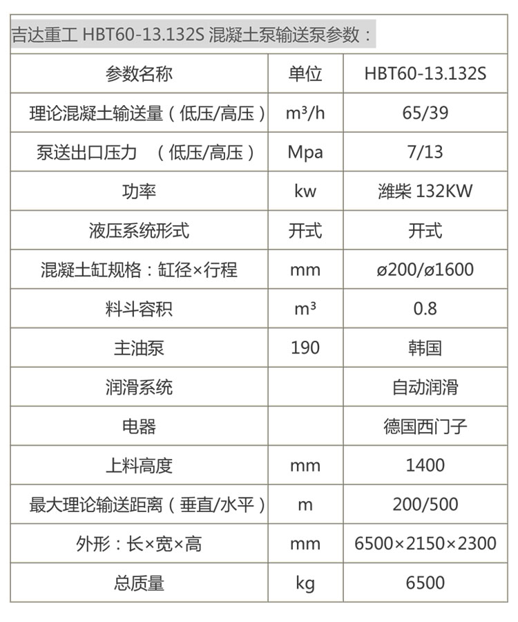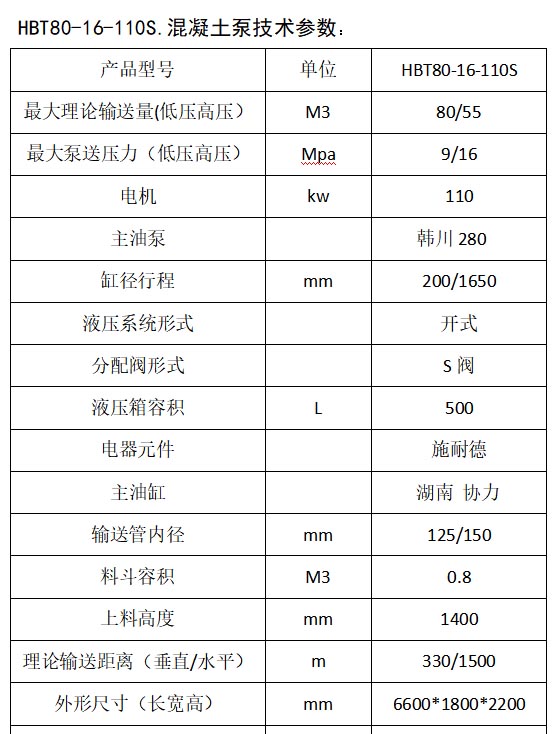 混凝土缸規(guī)格:缸徑*行徑Concretecylinder size:inner diameterxstroke | mm | 200x1650 | 200x1650 | 200x1650 | 200x1650 | ||||