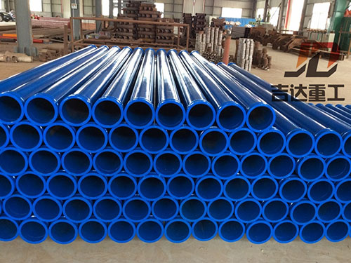 吉達(dá)重工第六代泵車雙層泵管、雙層彎頭引進(jìn)超音頻淬火設(shè)備,高頻內(nèi)壁熱處理工藝,使內(nèi)壁表面形成58-68HRC、層3.2-3.7mm,使管道壽命達(dá)到60000-80000立方,比原來的普通泵車管道提高了3-5倍,延長(zhǎng)了產(chǎn)品的使用壽命。